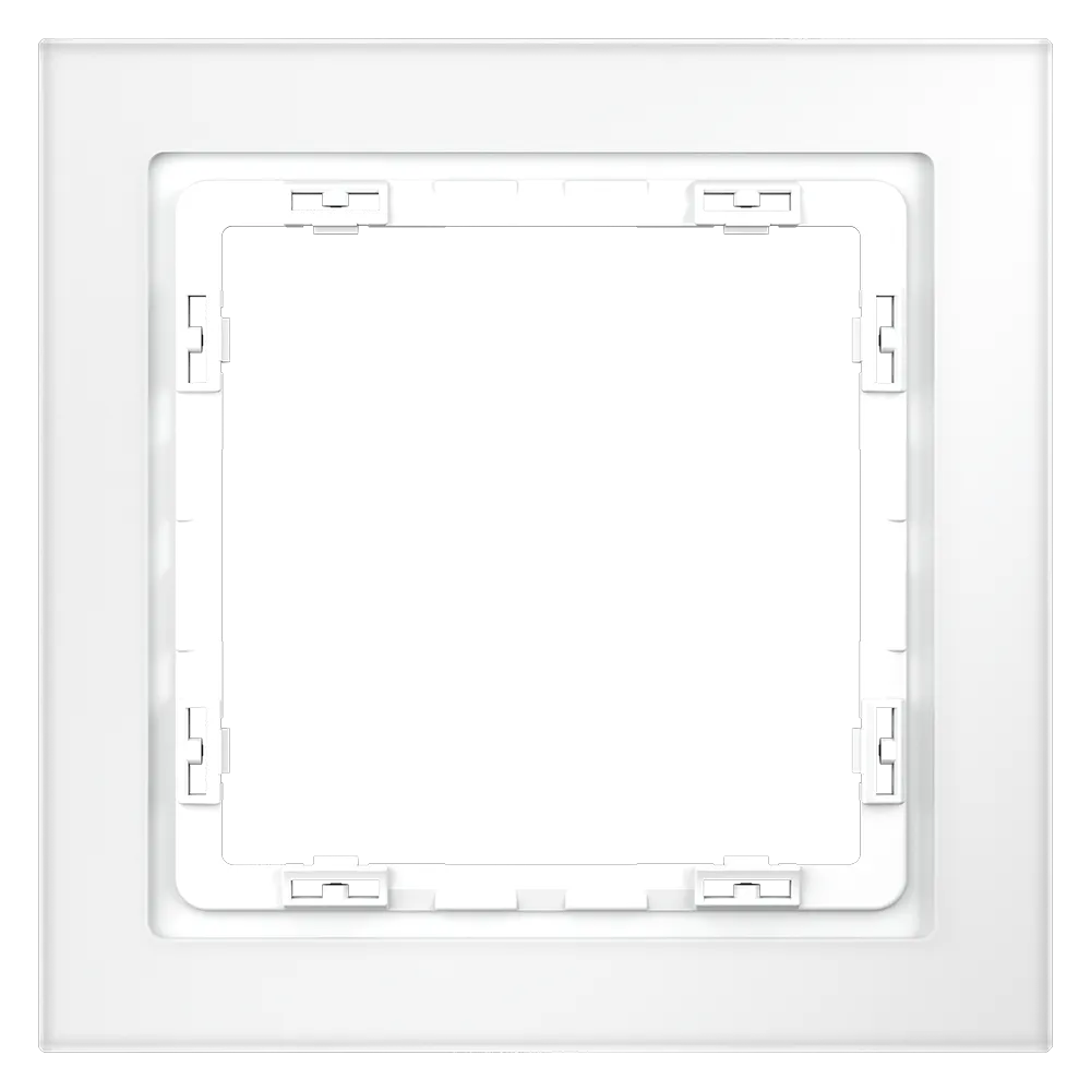 Обеспечивает быстрое и легкое соединение механизма с рамкой. Восемь фиксаторов по периметру нивелируют неровности стены и надежно удерживают конструкцию.