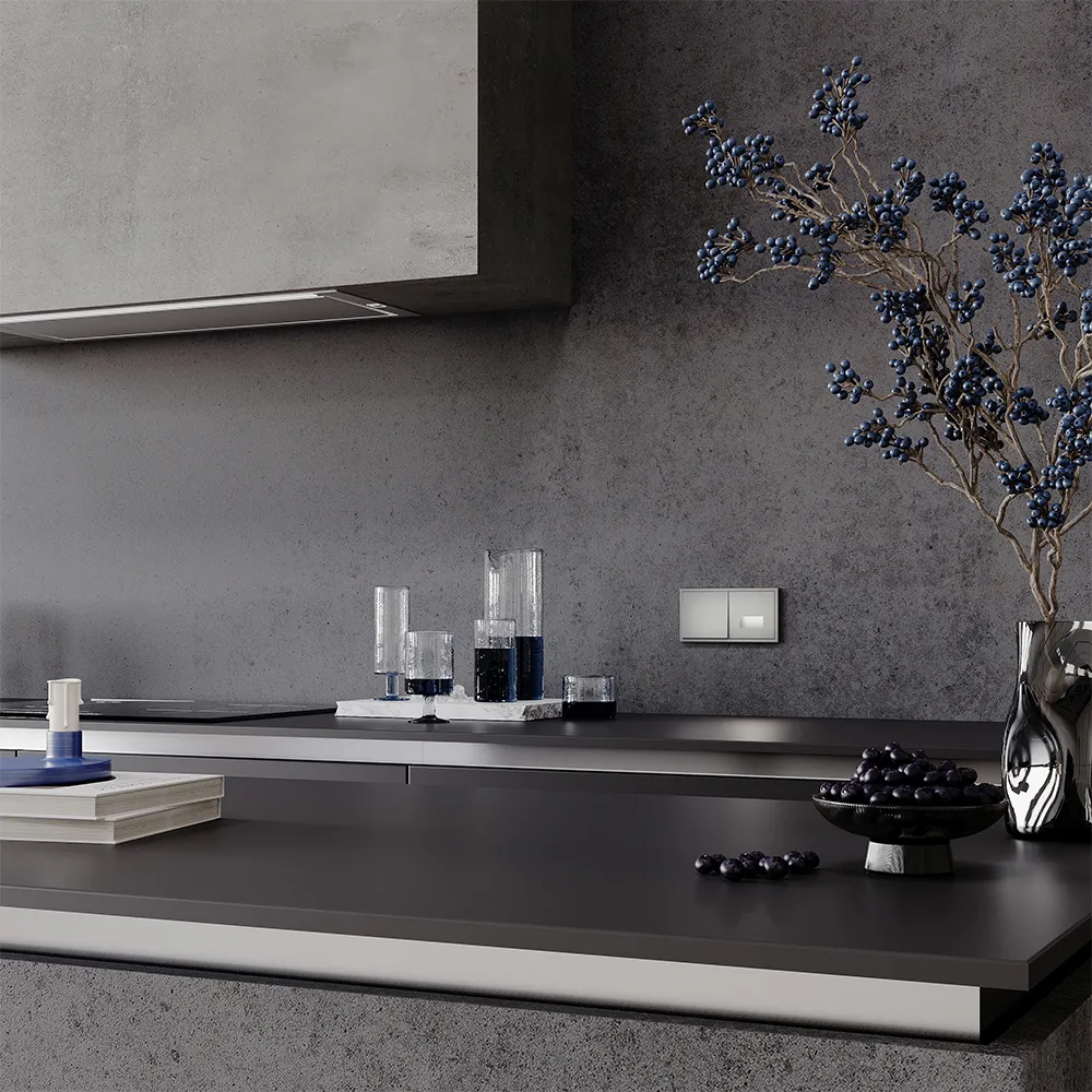 Выключатель VOLTUM S70 — часть модульной системы, которая позволяет комбинировать до 28 функций и 8 цветов, включая стекло и пластик. Все элементы серии идеально сочетаются между собой, обеспечивая целостность дизайна на всей площади объекта.