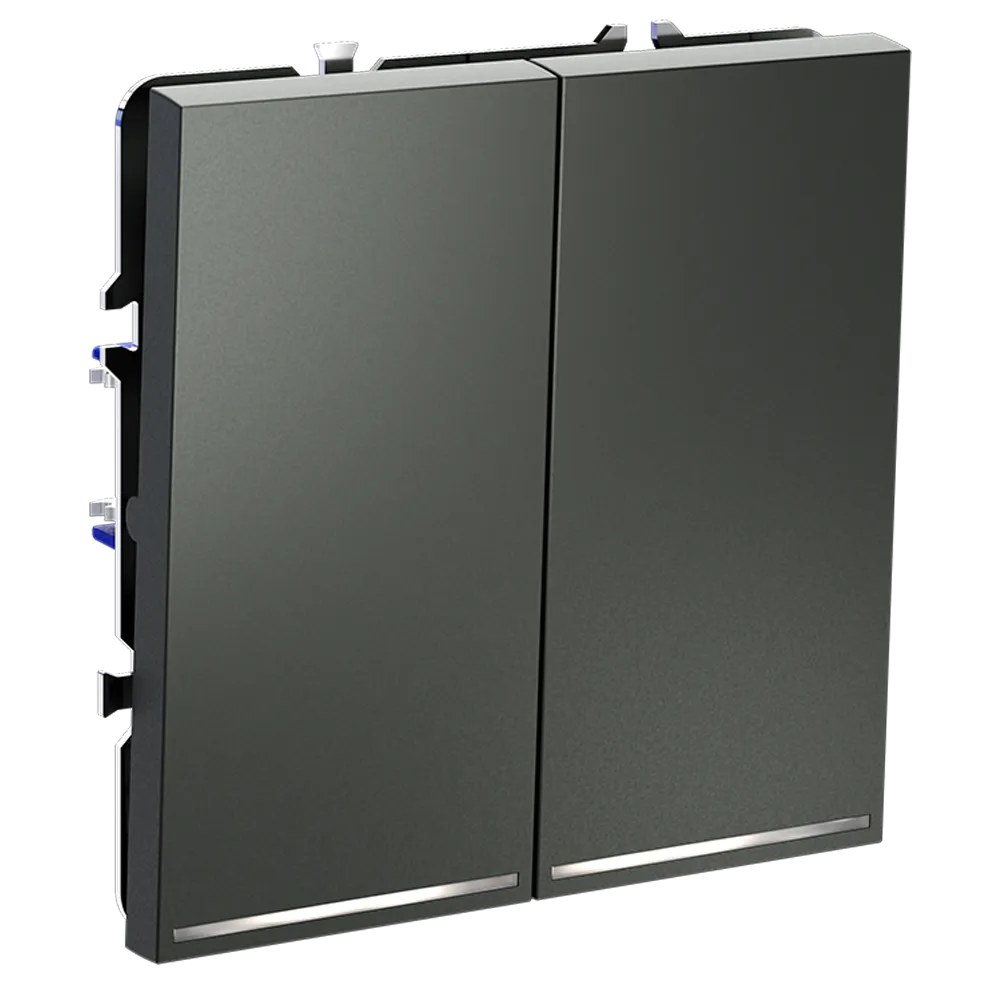Проходной переключатель встраиваемый VOLTUM S70 двухклавишный с подсветкой 10А (титан)