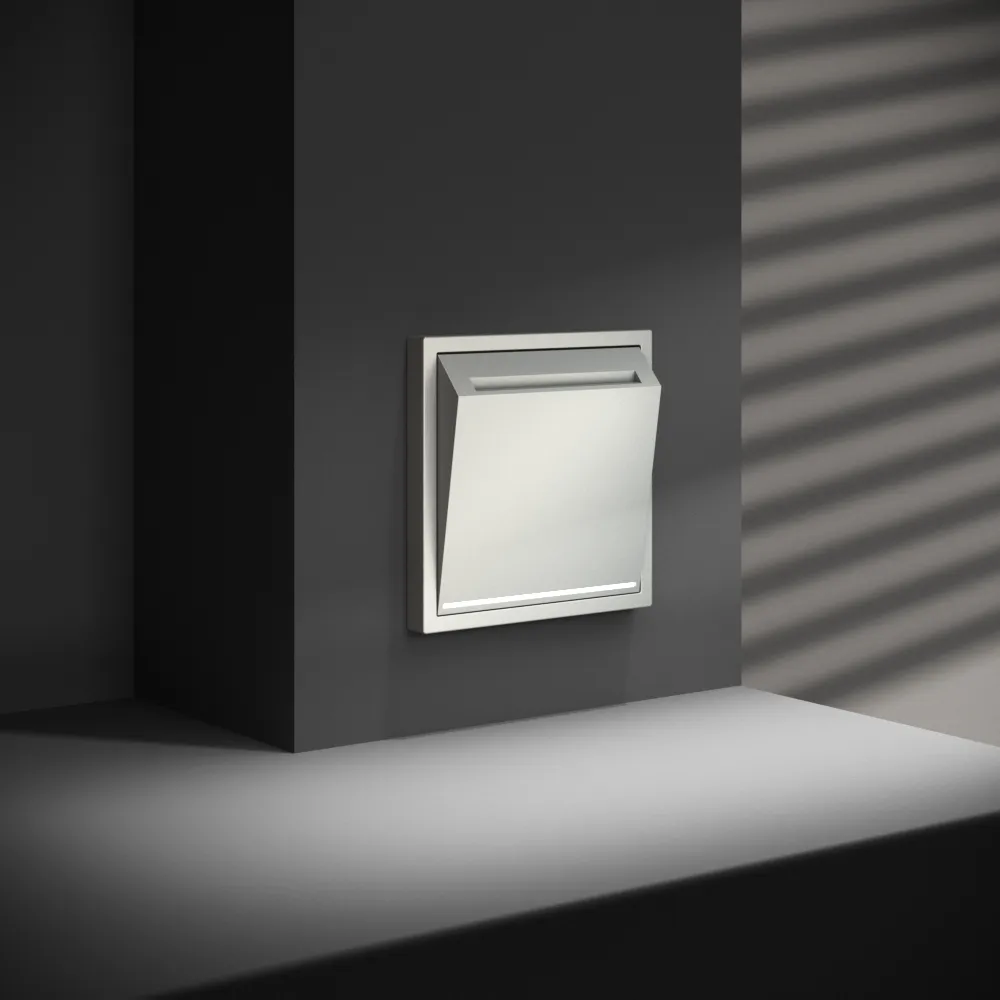 Выключатель встраиваемый VOLTUM S70 одноклавишный с подсветкой 10А (сталь)