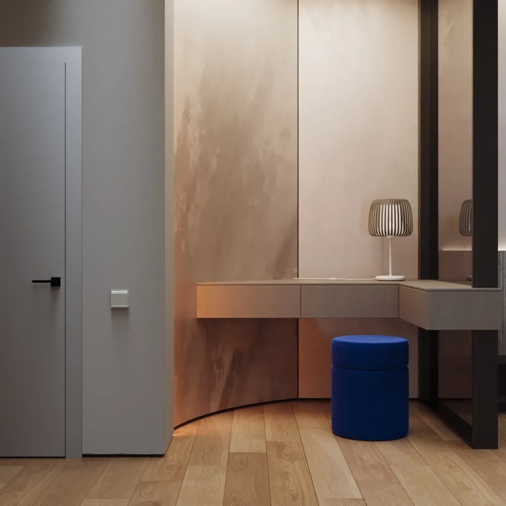 • Цвет «сталь» — инженерная эстетика без холода — глубокий металлический серо-стальной оттенок с покрытием Soft touch добавляет номеру современный характер. Не агрессивный, но выразительный — идеален для лофтовых апарт-отелей, бизнес-гостиниц и объектов с интерьерами в стиле минимализм или индастриал. Матовая поверхность скрывает следы интенсивной эксплуатации, сохраняя опрятный вид.