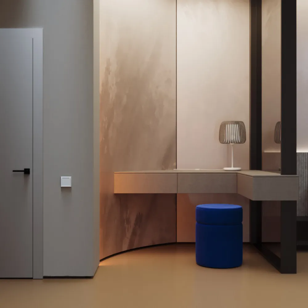• Белый матовый — без бликов и следов — покрытие Soft touch создаёт бархатистую поверхность, которая не отражает свет от бра или окна и не собирает отпечатки пальцев. На светлых стенах визуально «растворяется», на тёмных — становится сдержанным акцентом без агрессии. Габариты 70,8 × 70,8 мм идеально вписываются в любую композицию серии S70.