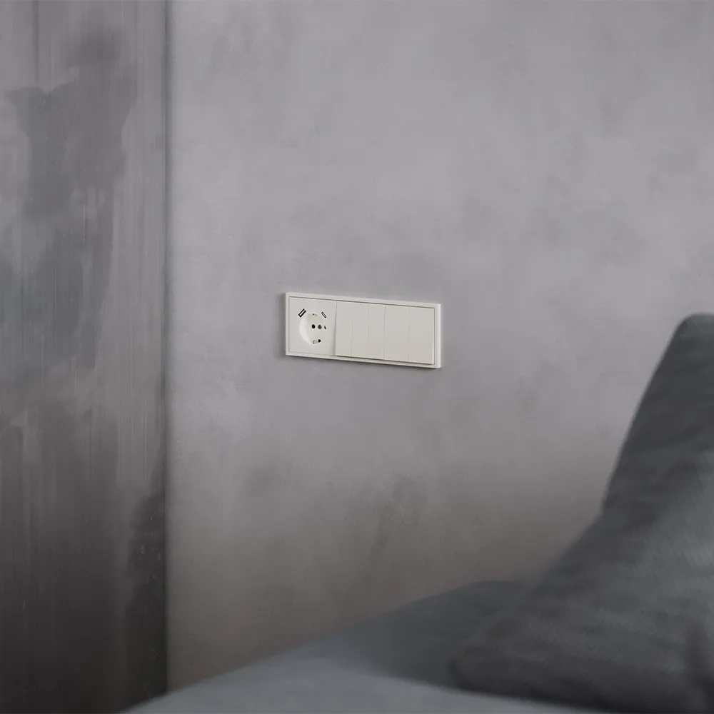 Выключатель полностью совместим с рамками из пластика и закалённого стекла той же серии и гармонично сочетается с другими устройствами VOLTUM S70 — от розеток до терморегуляторов и датчиков движения.
